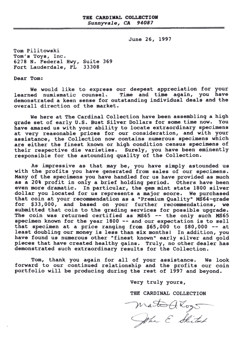 dramatic. In particular, the gem mint state 1800 Silver Dollar