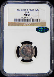 dime in pocket change. It was a 1833 dime with the variety