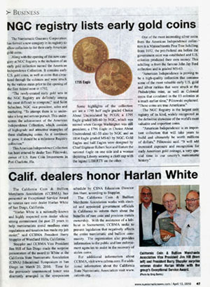 registry lists early gold coins Numismatic