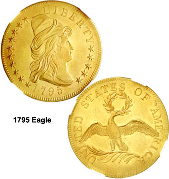 Choice About Uncirculated by PCGS; a 1795 Eagle graded MS-60